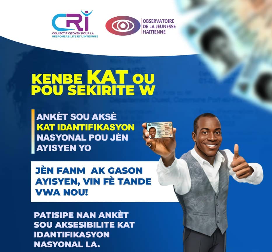 Port-au-Prince, 28 novembre 2025 – Le Collectif Citoyen pour la Responsabilité et l’Intégrité (CRI) et l’Observatoire de la Jeunesse Haïtienne (OJH) annoncent le lancement officiel d’une enquête nationale sur l’accès des jeunes à la Carte d’Identification Nationale (CIN),